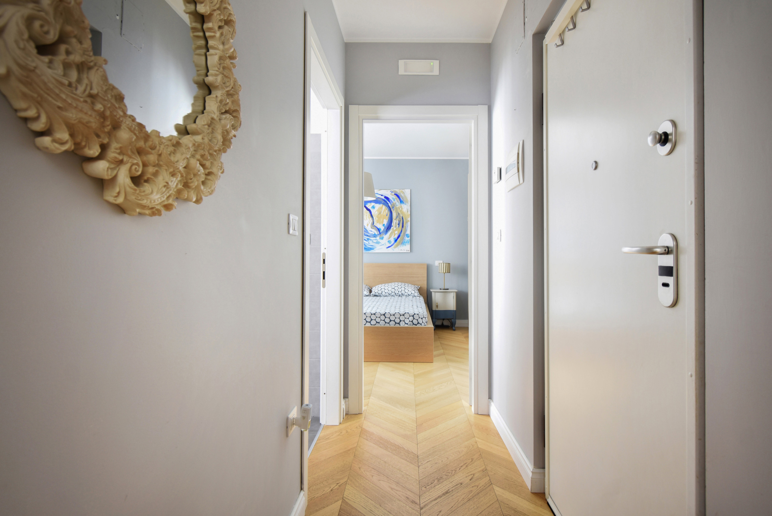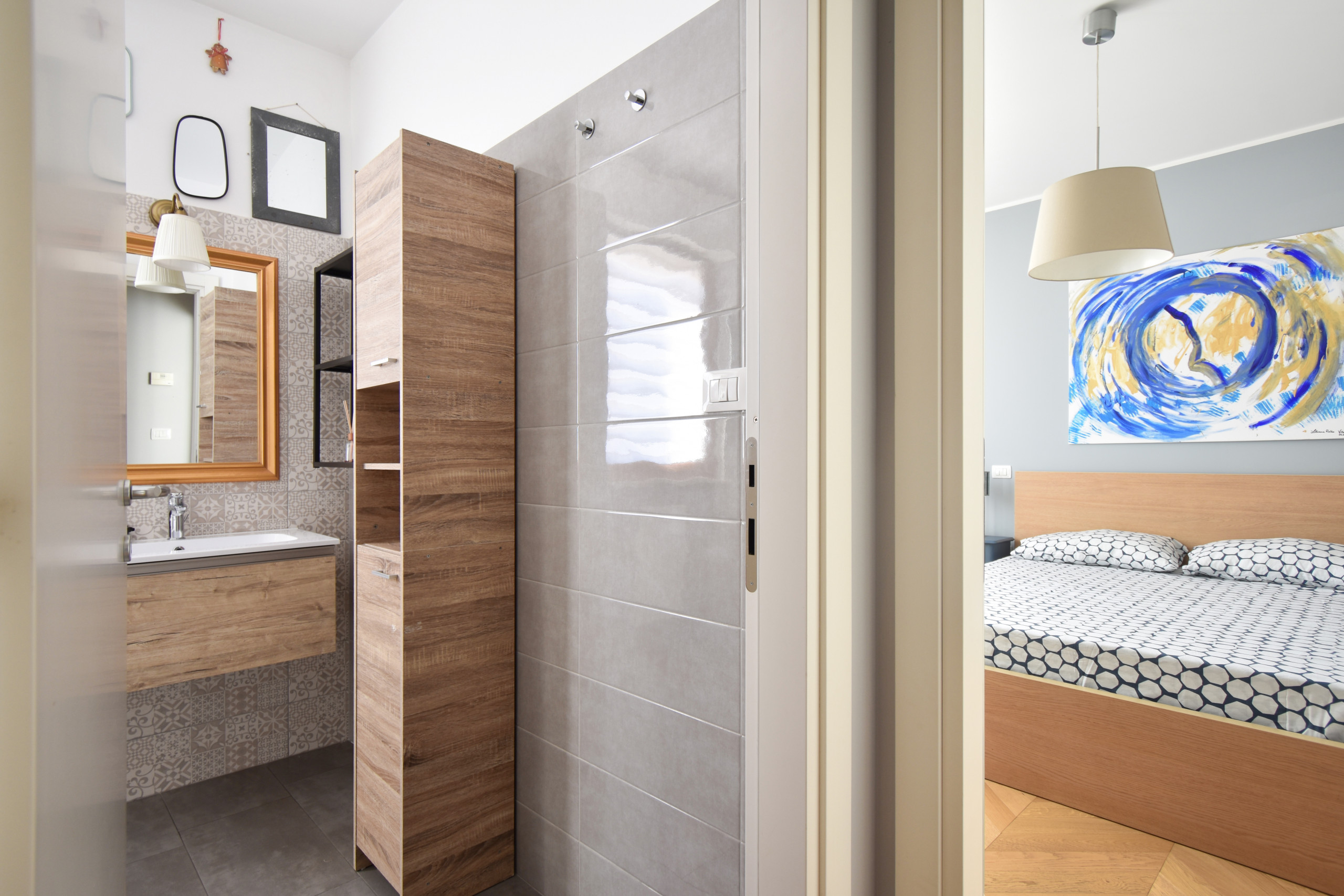 Comfort su misura: L’appartamento dispone di due camere da letto matrimoniali, pensate per offrirvi il massimo comfort e tranquillità. La cucina, completamente accessoriata, è pronta per ispirare le vostre ricette preferite o semplicemente per prepararvi un buon caffè prima di esplorare la città. Il bagno, moderno e dotato di una comoda doccia, completa gli spazi della casa.