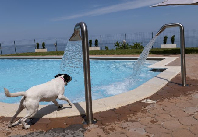 The accommodation is equipped with the following items: garden, garden furniture, fenced garden, 5 m² terrace, washing machine, barbecue, fireplace, internet (Wi-Fi), hair dryer, balcony, central heating, private swimming pool, open-air parking the same building, 1 TV.